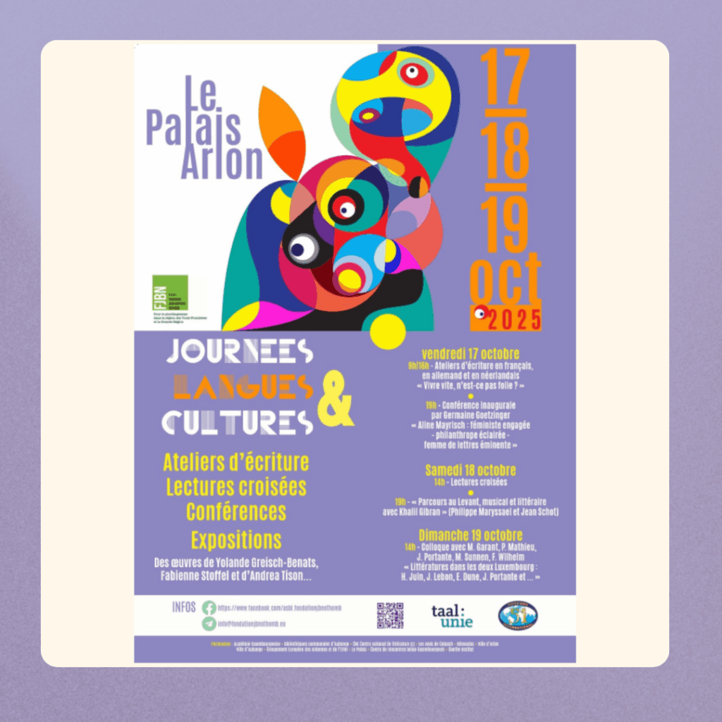 En 2022 a eu lieu à Arlon la première édition des Journées des Langues et des Cultures pour (re)donner le goût des langues, qui ouvrent le dialogue, au-delà des frontières. L’édition 2025 aura lieu du 17 au 19 octobre.
